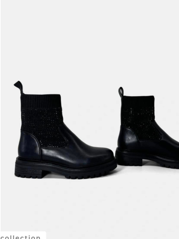 Les Stellar Boots allient style et confort pour les femmes modernes. Avec leur base en cuir noir robuste et leur chaussette tricotée ornée de strass scintillants, ces bottines sont à la fois pratiques et glamour. Leur semelle épaisse et antidérapante garantit une stabilité optimale, idéale pour une journée active ou une soirée chic. Parfaites pour les saisons fraîches, elles ajoutent une touche d’élégance audacieuse à n’importe quelle tenue.